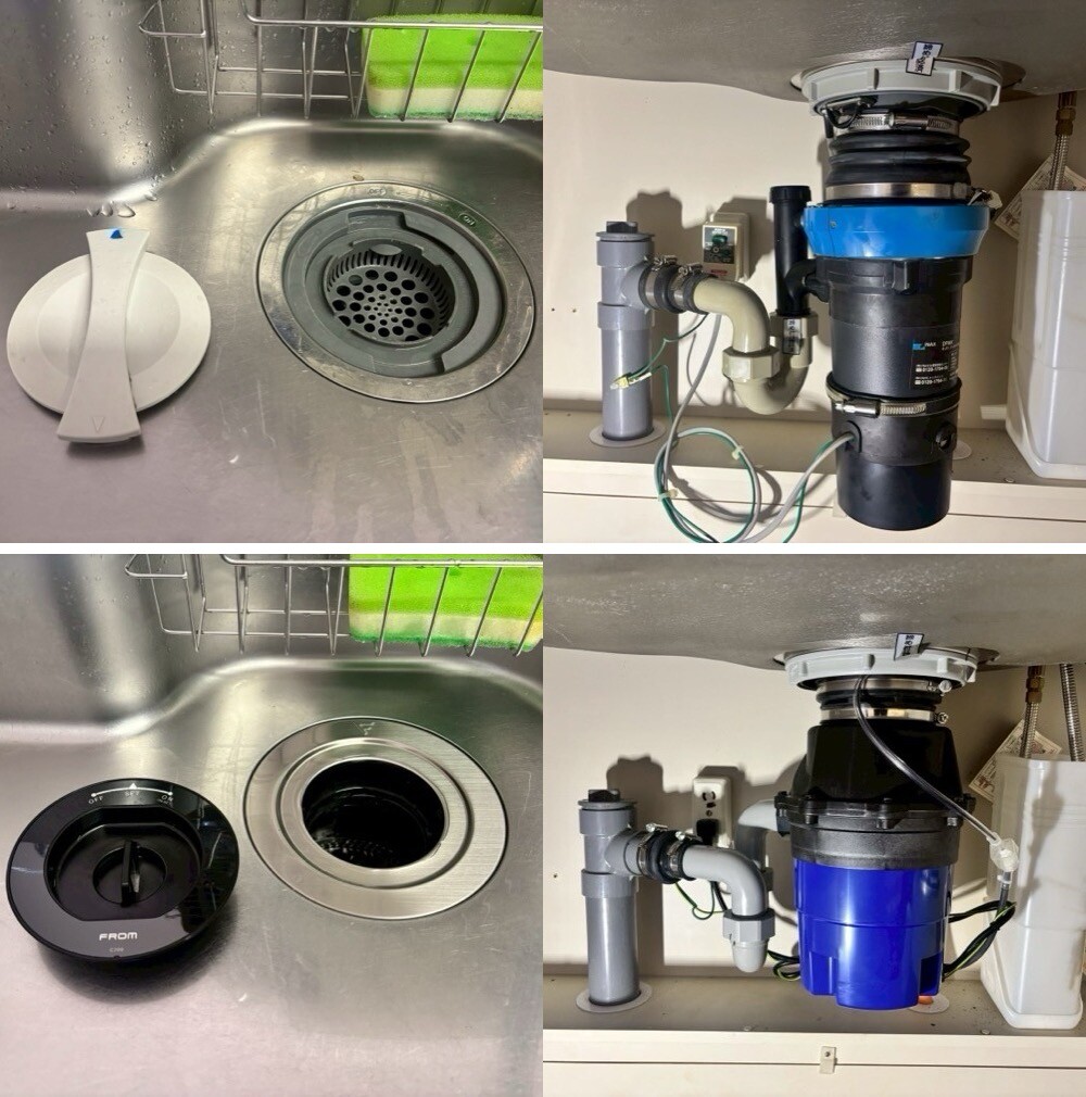 HPより、ディスポーザーが故障してしまったとのことで交換してほしいとご相談下さりました。 エマソン製ISE110手動ディスポーザーからフロム工業製ディスポーザーYS 8100に交換 2025/8/27場所 : 東京都台東区症状 : 故障既設:エマソン In Sink Erator製... -